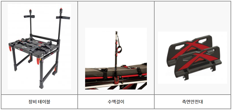 ● 구급차에 적재시 주들것을 들어 올릴 필요가 없어 구급대원의 허리부상을 방지할 수 있어야 한다.
